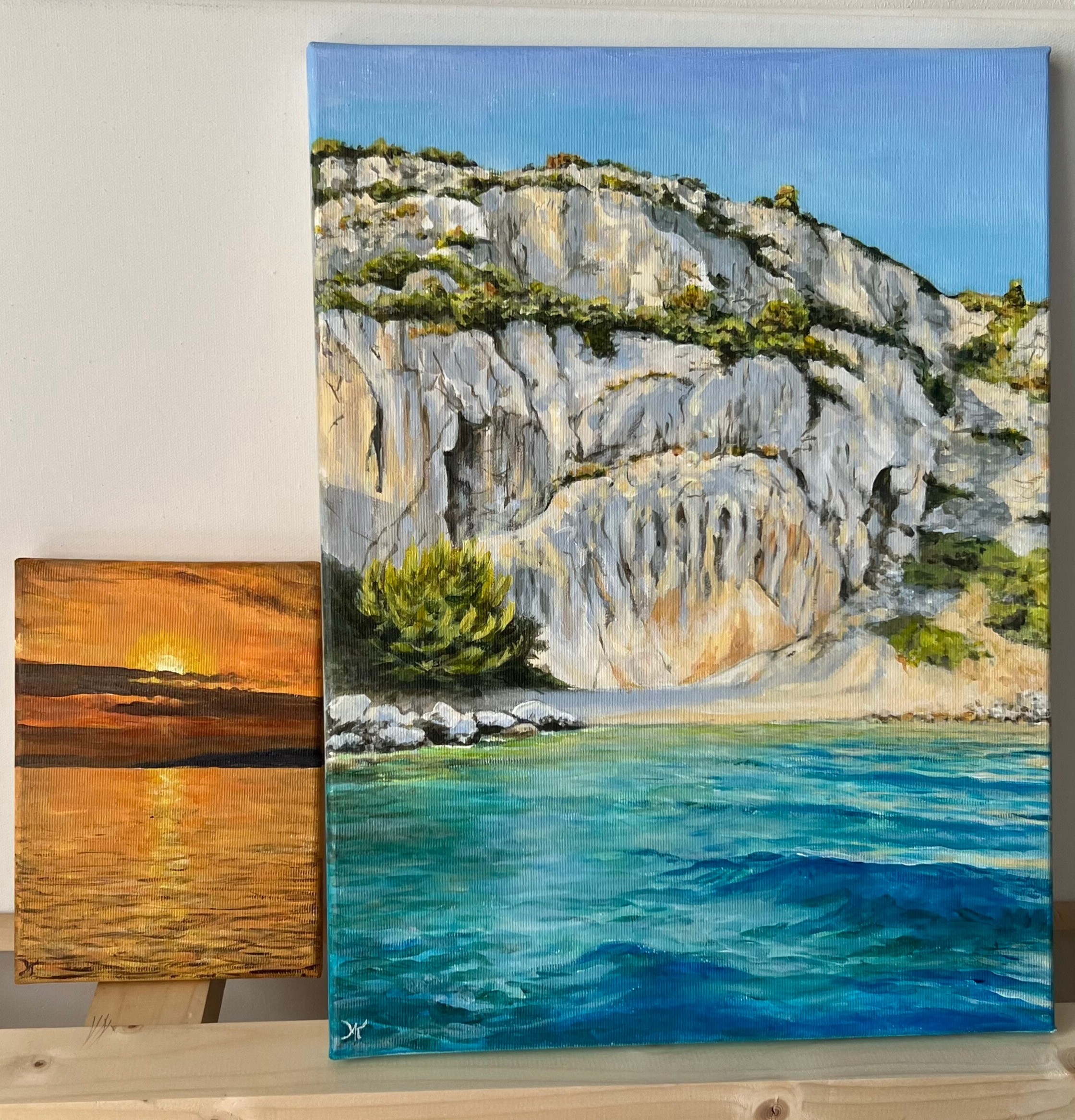 Obraz namalowany farbami akrylowymi na podobraziu bawełnianym.