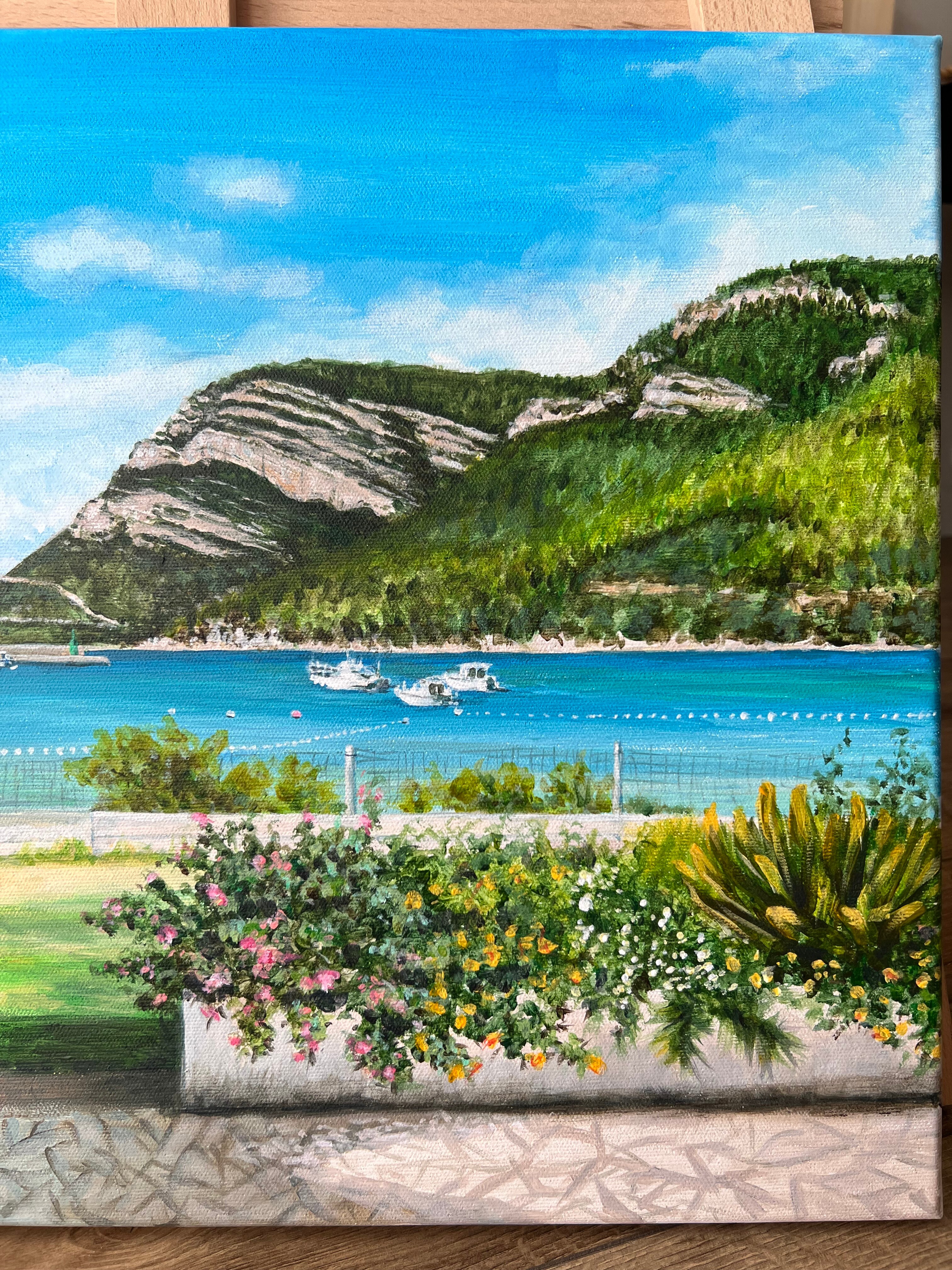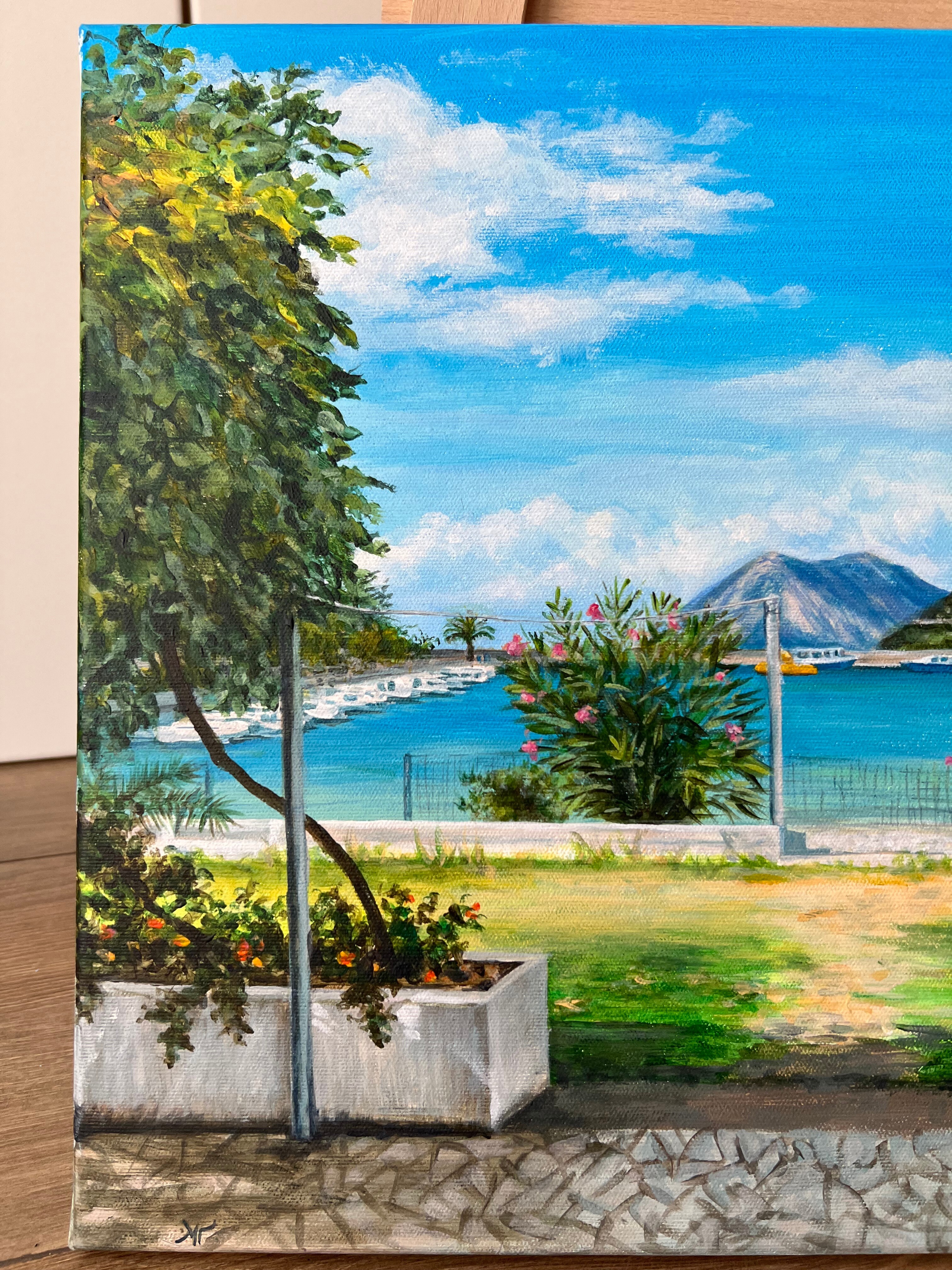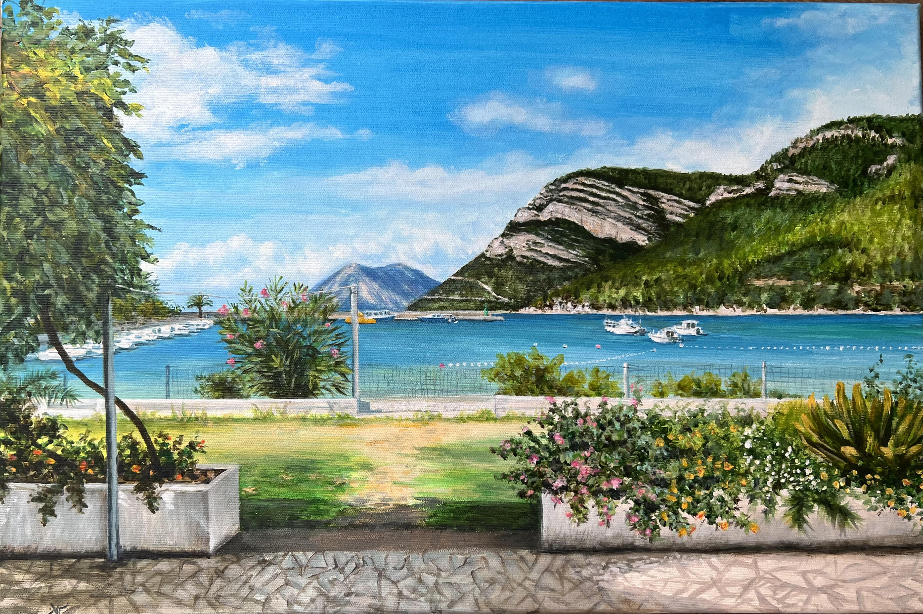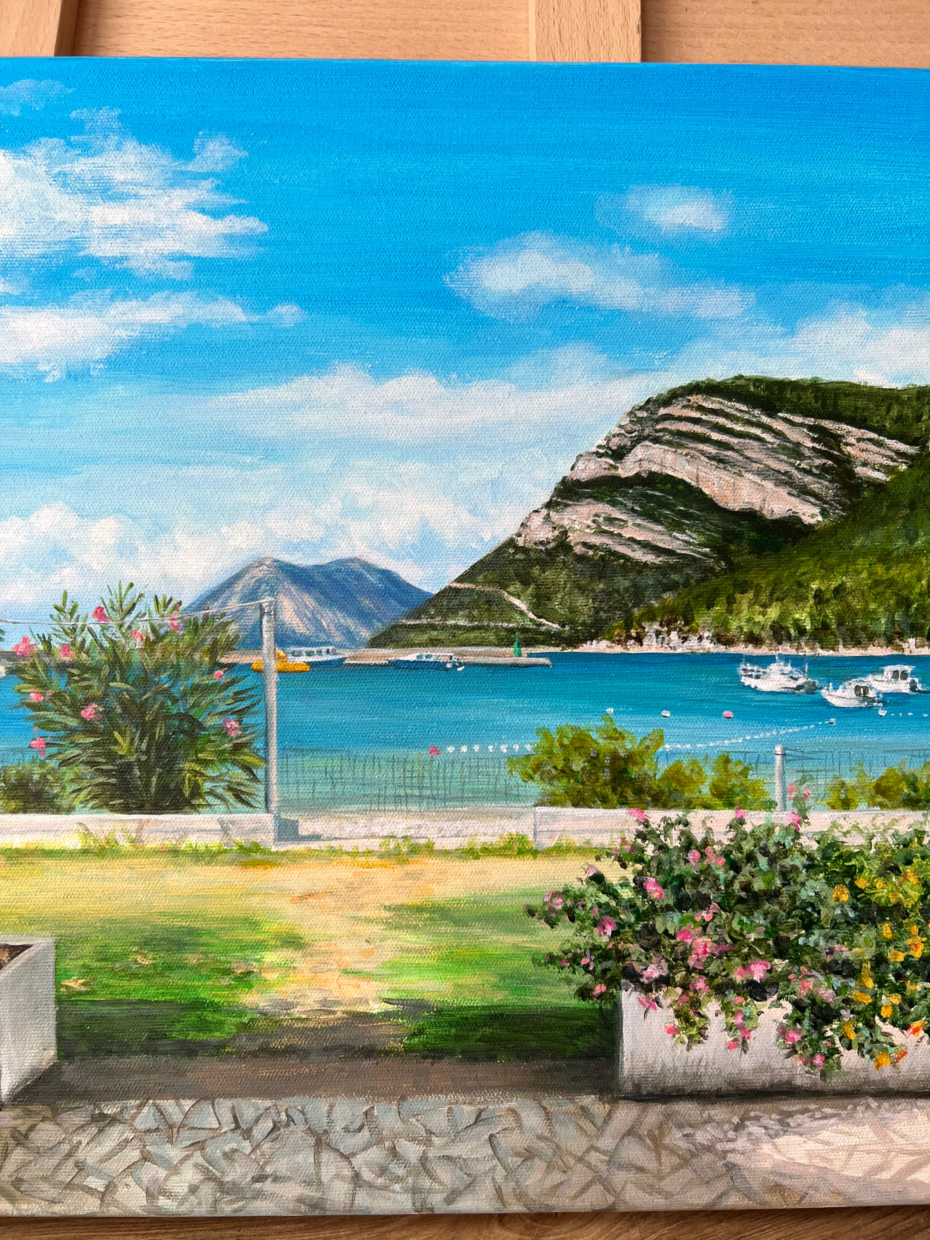 Ten obraz przedstawia malowniczą zatokę w Žuljanie - małej rybackiej wiosce położonej na półwyspie Pelješac. Otoczona górami, zielenią śródziemnomorskiej roślinności i turkusową wodą stanowi kwintesencję naturalnego piękna tego półwyspu.